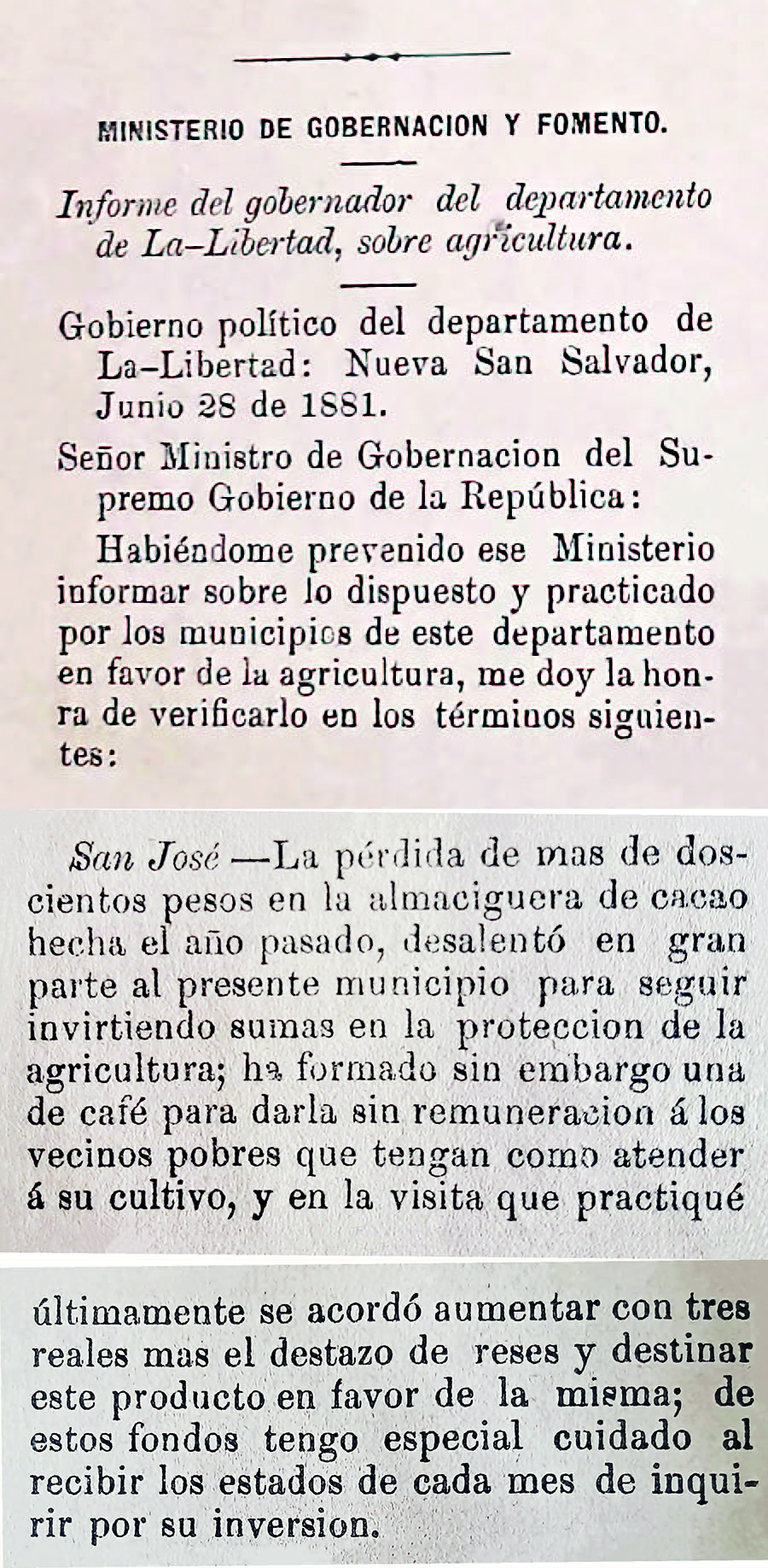 Agriculture Judges of the Department of Nueva San Salvador. Within the graph, the presence of Hilario Guillen stands out, who served as Agriculture Judge of San José Villanueva for 1881. Photograph taken from the Official Gazette of El Salvador, facilitated by the General Archive of the Nation.